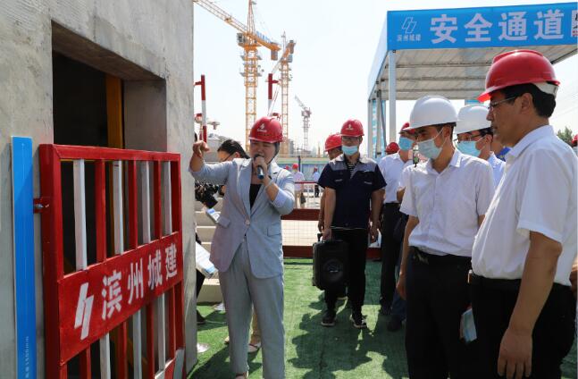 為了進一步提升我市房屋建筑工程安全防護、揚塵治理標準化和規范化水平,推動我市建筑企業安全防護和揚塵治理水平再上新臺階。6月20日,全市房屋建筑工程安全生產和揚塵治理標準化現場觀摩活動在山東濱州城建集團有限公司承建的民安鵲華苑工程施工現場舉行,活動圍繞2020年全國安全生產月——“消除事故隱患,筑牢安全防線”的主題,著眼當前全市住建領域的揚塵治理形勢,大力營造“人人重視安全、人人關注環?!钡牧己梅諊?,掀起安全生產和揚塵治理標準化工地的創建高潮。此次觀摩活動由濱州市住房和城鄉建設局主辦,山東濱州城建集團有限公司承辦,濱州民安置業有限公司協辦。市政府辦公室黨組成員辦公室副主任梅振鵬、市住房和城鄉建設局局長孫文利、市住房和城鄉建設局副局長張海濱、市城建服務中心副主任張樹林、濱城區住房和城鄉建設局局長張亮、開發區綜合執法局局長封涌波、濱州城建集團有限公司董事長曹慶訓、總經理孟慶國、濱州民安置業有限公司經理曹亮以及濱城區、開發區建設主管部門安全、揚塵管理機構負責人;市城建服務中心、市市政服務中心、市住建局建管質安科、人防工程科、開發中心、市質管站、綜合執法大隊、市安管站建筑工地揚塵治理包保片區人員;市本級、濱城區、開發區各房屋建筑工地項目經理。共計約220余人出席觀摩會。
