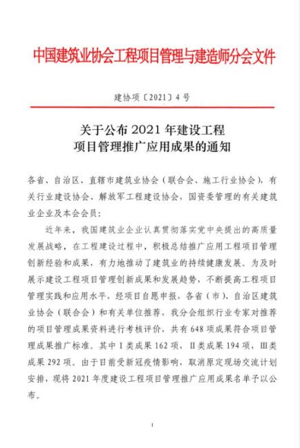 近日,中國建筑業協會發布的《關于公布2021年建設工程項目管理推廣應用成果的通知》文件顯示,城建集團申報的《機電工程BIM深化設計助推項目管理再上新水平》榮獲國家級建設工程項目管理推廣應用一類成果。