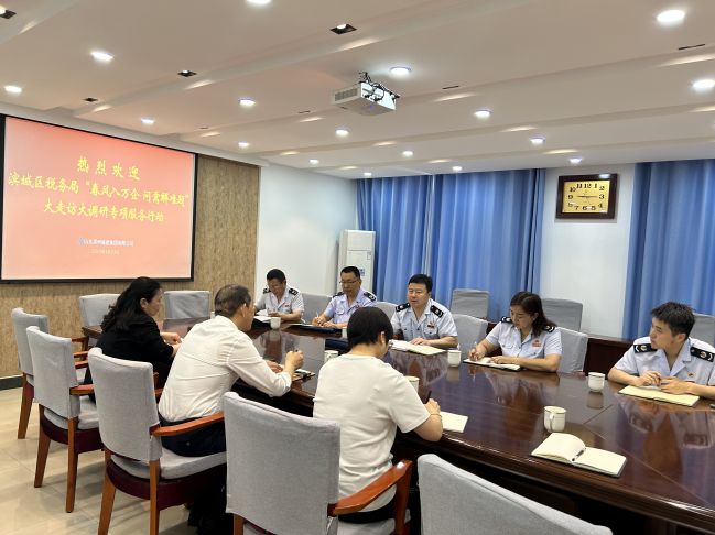 會上,濱城區稅務局調研組同志就我公司承接項目情況及相關問題、建議進行了深入溝通與交流,現場解答了公司財務人員在涉稅工作中存在的疑點難點問題,讓公司切實感受到了稅務部門便民辦稅的“春風”。